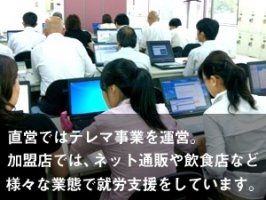 就労支援継続A型の事業所です。ビジネスマナーや営業スキルを学びながら、パソコンを使ってインターネット上でのショップ運営やテレアポ代行コールセンターでの接客をして頂きます。...